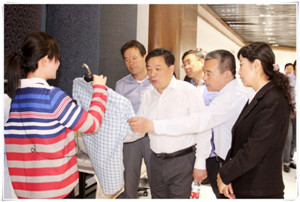 岱银集团副总经理赵焕曦详细汇报了企业在科技创新、智能制造、大数据高级定制和智能吊挂MES云平台系统方面所取得的成绩,并陪同参观考察了岱银天梭工业园区的雷诺高档西服车间以及企业展厅。