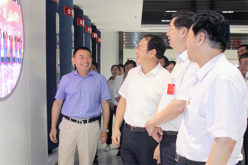 9月12日下午,驻鲁全国人大代表一行14人来岱银集团围绕“提升传统产业,改造形成新动能”开展专题调研,市人大常委会主任唐福泉等领导陪同调研,岱银集团董事长赵焕臣接待。