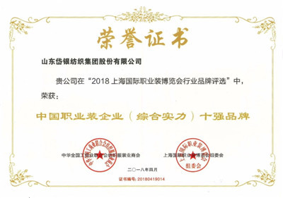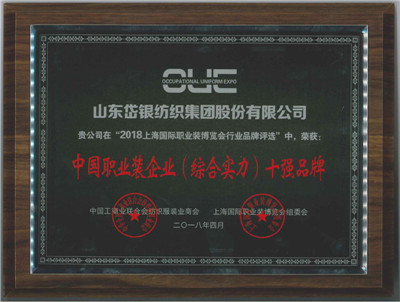 本次盛会以“集合产业链优势、推动供应链模式的变革与创新、引领职业装行业新生态”为主题,揭晓了“2018中国职业装企业(综合实力)十强品牌”,山东岱银纺织集团股份有限公司以雄厚的品牌实力及团购职业装定制优势,经过层层审核评选脱颖而出,荣获“中国职业装企业(综合实力)十强品牌”称号,这标志着集团在国内职业装领域具有领先的地位。