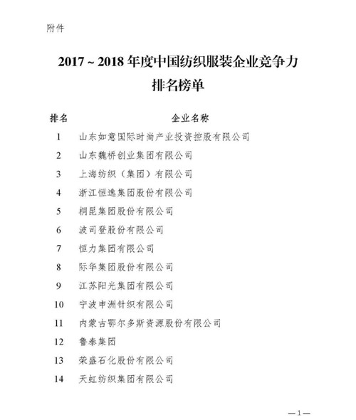 近日,中国纺织工业联合会发布了2017-2018年度中国纺织服装企业竞争力测评结果,岱银集团名列“2017-2018年度中国纺织服装企业竞争力排名榜单”第55位。