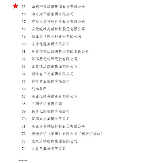 岱银集团名列“中国纺织服装企业竞争力排名榜单”第55位