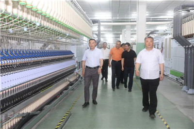 参加投产庆典的领导和嘉宾在仪式结束后,参观了岱银新宇纺织公司三万锭智能纺纱生产线。